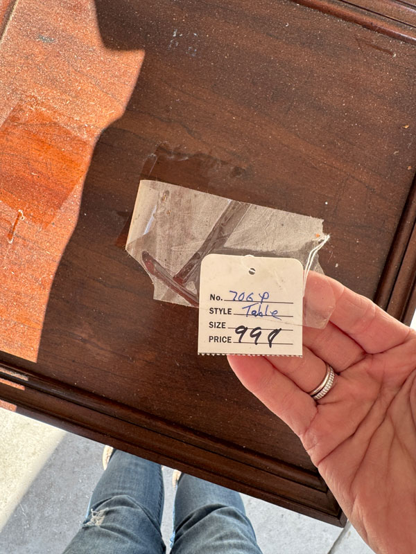 Hello, sweet friends! I’m back to today sharing a $10 vintage side table makeover. I found it at the thrift store and scooped it right on up: