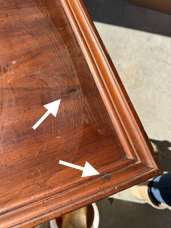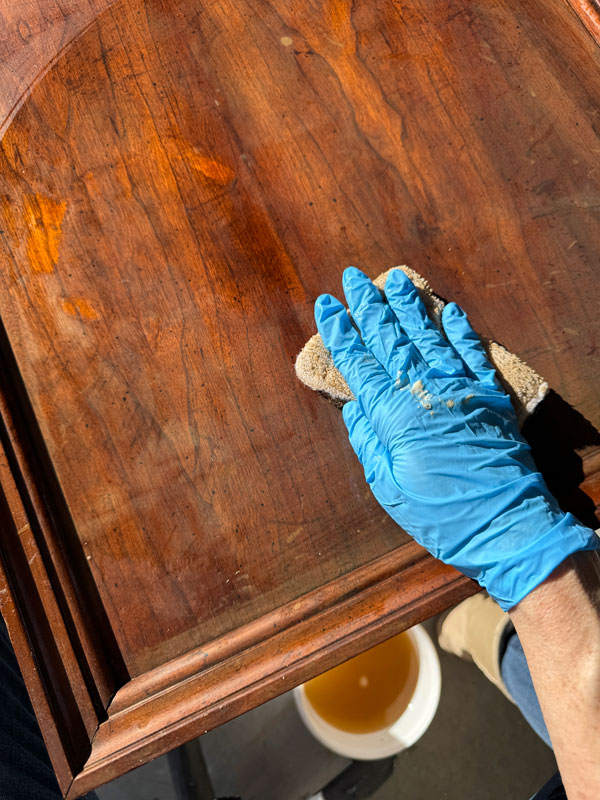 Because this is an older piece and has some red undertones, I went ahead and applied one coat of clear Bonding BOSS and let that sit for 24 hours to do its thing. (The instructions may say apply two to three coats as needed, but that is NOT necessary! Proper dry time is KEY, not extra coats! Rarely, have I had to go back in with a second coat.)